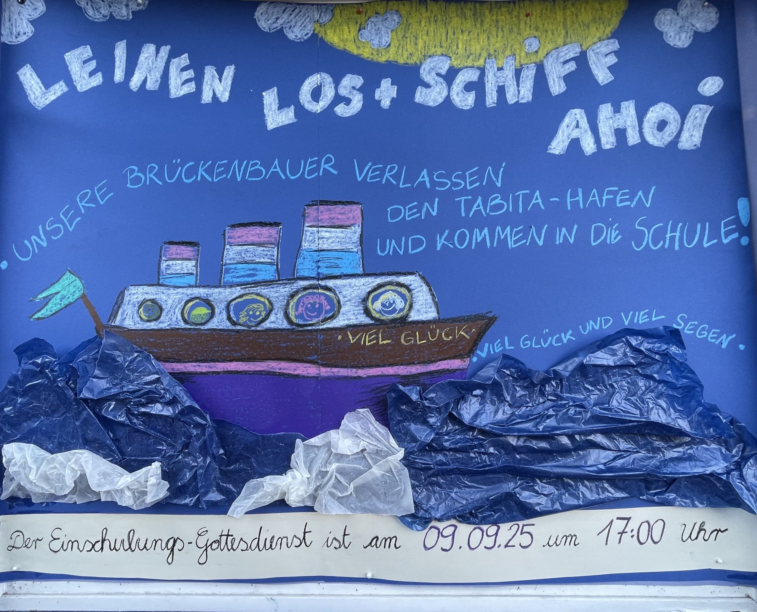 Am 09.09.2025 um 17:00 Uhr findet unser Einschulungsgottesdienst für die Abgangskinder und Ihre Eltern in der Kreuzkirche mit Pastorin M. Geray statt.